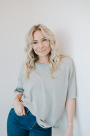 CHILL IN THIS COOL AND LAID BACK, OVERSIZED T-SHIRT THAT SHAPES A CREW NECKLINE, DROP SHOULDERS, AND SHORT SLEEVES OVER A WIDE CUT BODICE THAT EXTENDS INTO AN OVERSIZED SILHOUETTE WITH A PLAIN HEM. PAIR WITH A CUTE BOTTOM TO FINISH THE LOOK. SELF : 100% COTTON CONTRAST : 100% COTTON IMPORTED. DESIGNED IN THE USA