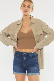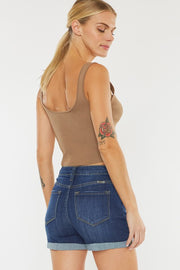 This pair of shorts creates a classically easy-going and versatile look, making it a well-rounded addition to your warm-weather wardrobe! Create a figure-flattering look and ease of styling with a range of tops! Featuring a high-rise fit that cinch and accentuates your waist, contrast stitching, cuffed hems, a 5-pocket design, and single button closure with zip fly.