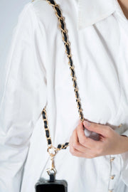 Kaitlyn - Metal and Leather Crossbody Chain with Golden Carabiners Black The American Case