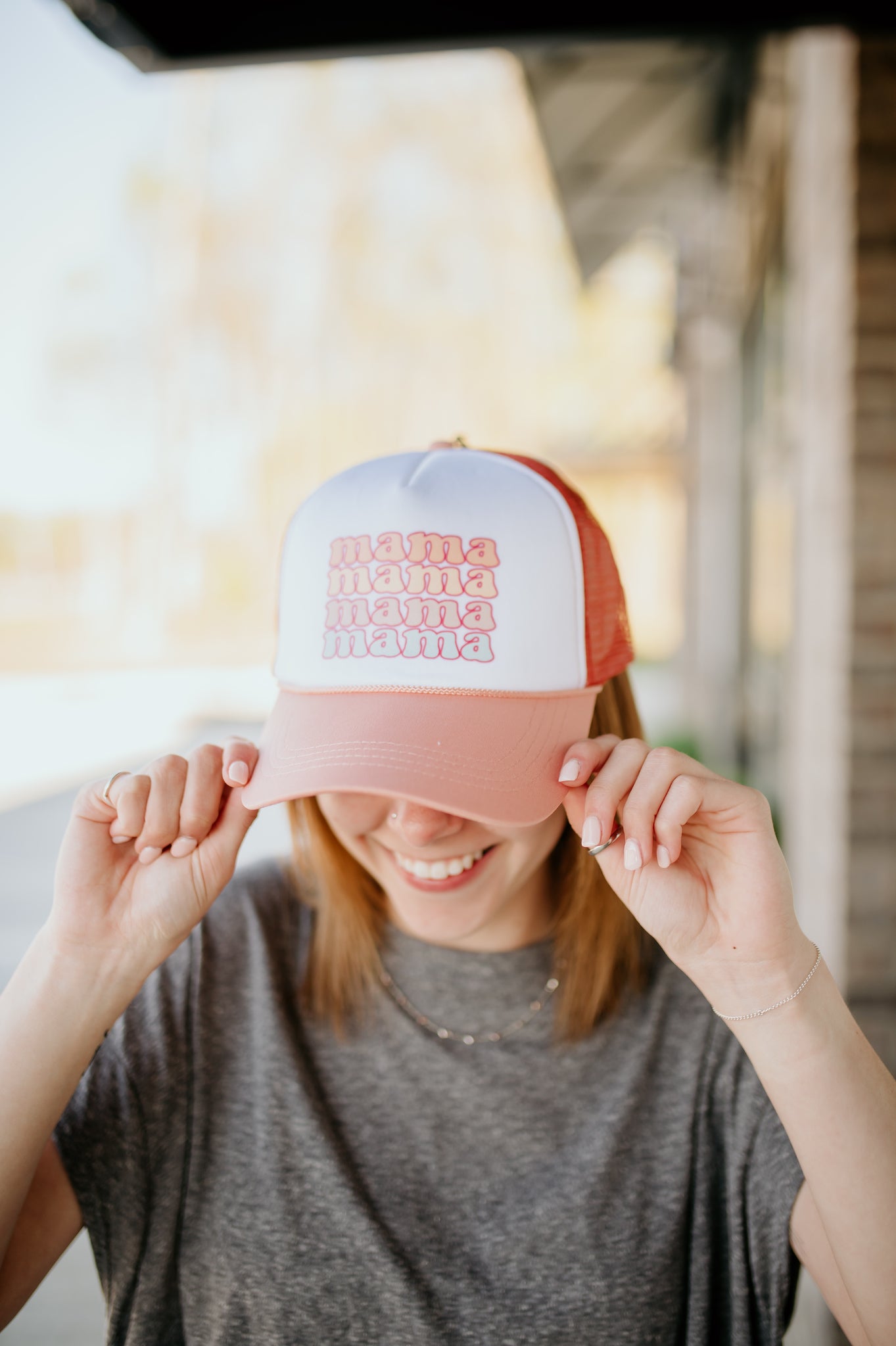 MAMA Foam Trucker Hat - MAMA Printed Design - 100% Polyester - Relaxed Fit and Pre-Curved Visor - Snap Closure *One Size Fits All - Adjustable strap makes fit comfortable*