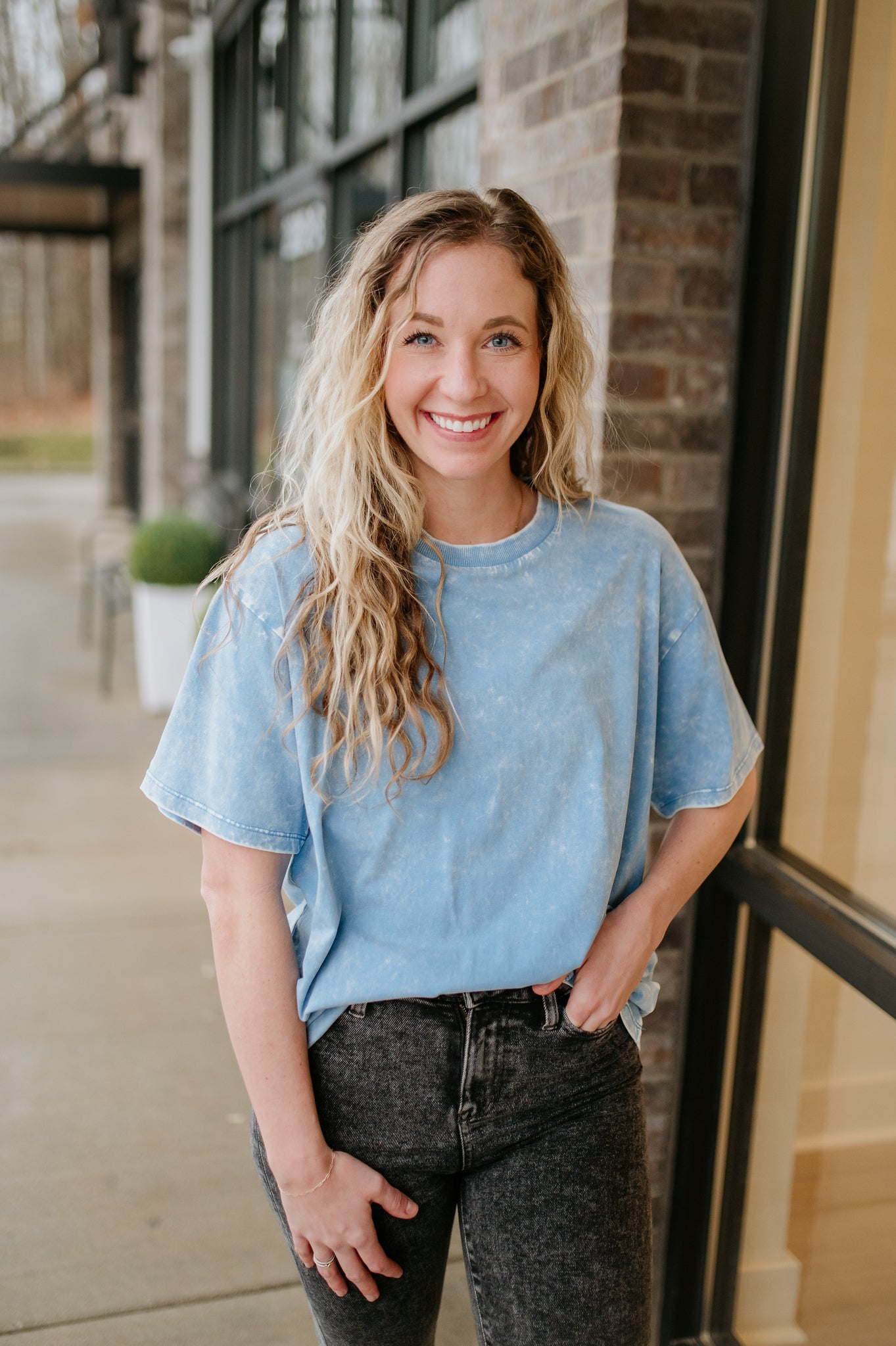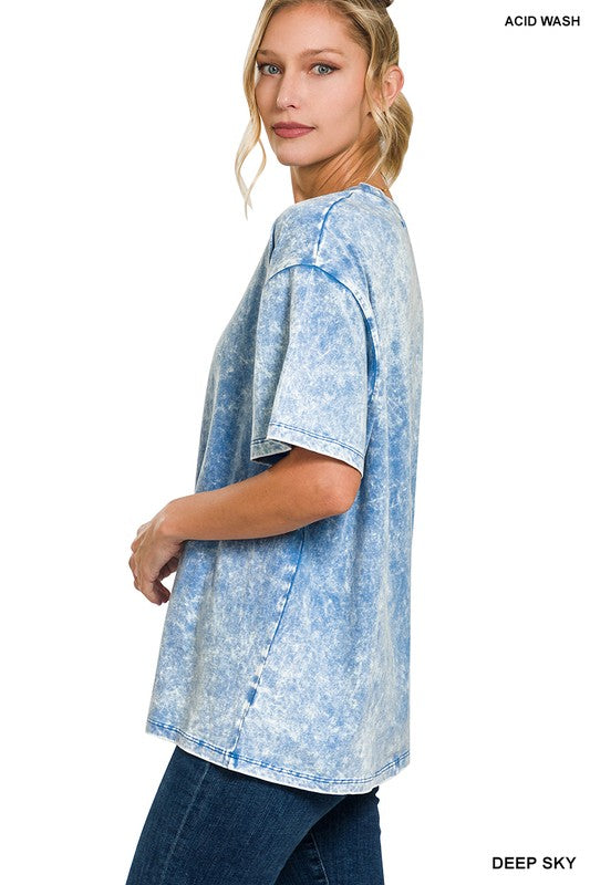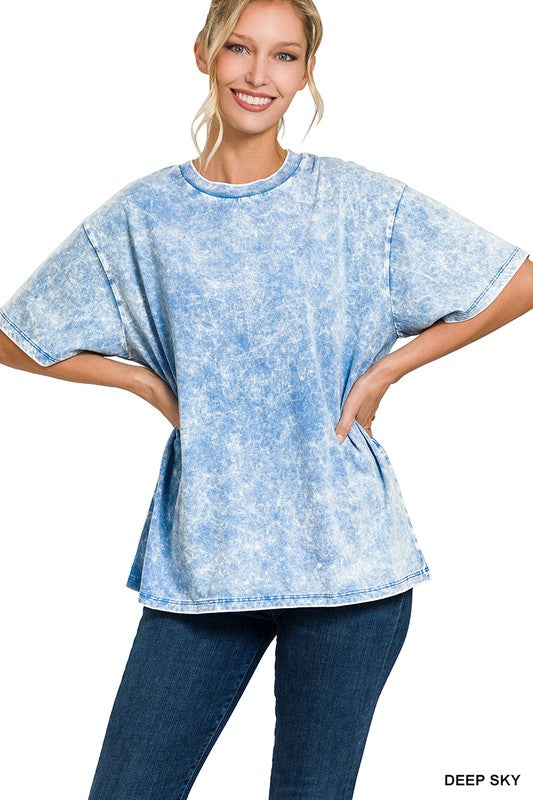 WASHED SHORT SLEEVE TOP * Each item is unique, expect variations in color and finishing TOTAL BODY LENGTH: 28"(FRONT), BUST: 46" approx. - MEASURED FROM SMALL ** COLOR MAY VARY SLIGHTLY DUE TO MONITOR RESOLUTION