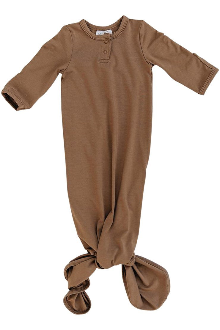 These are our new gowns! They are size 0-3. They have fold over hands and two snaps for easy on and off. The bottom is easily tied and untied in a knot for easy diaper changes. These are made out of the same fabric as our stretch swaddles and match the colors!
