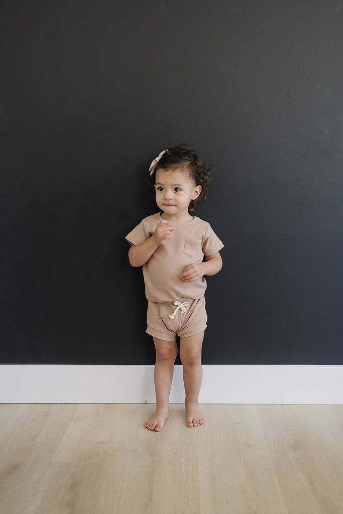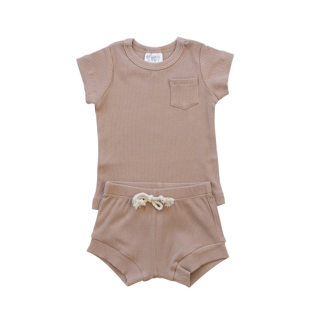 pale pink organic cotton ribbed short set