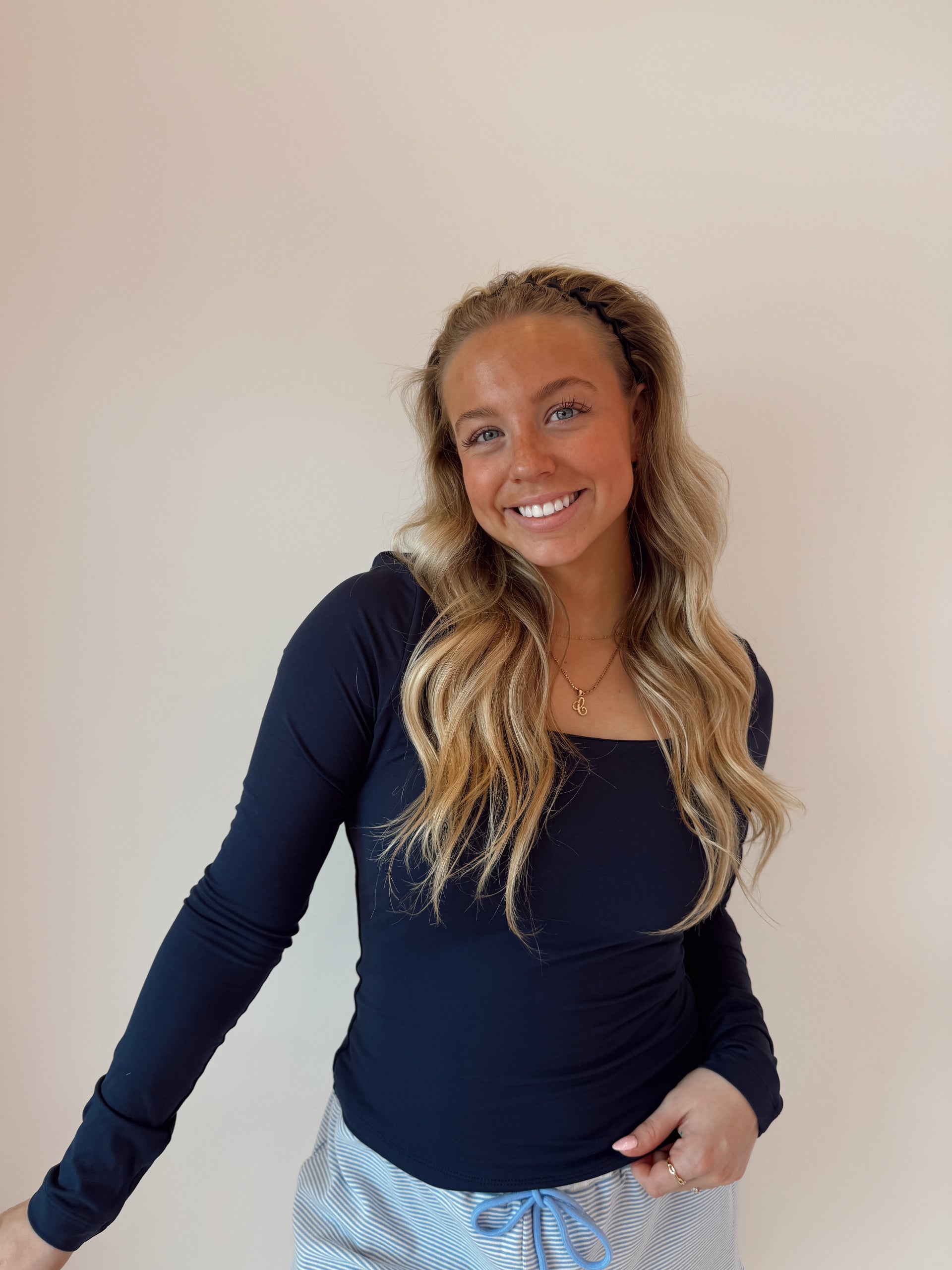 Recycled butter square neck long sleeve NAVY