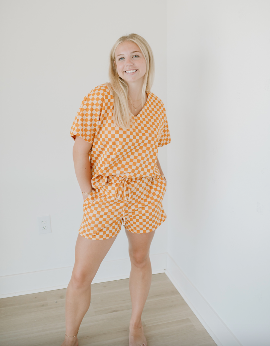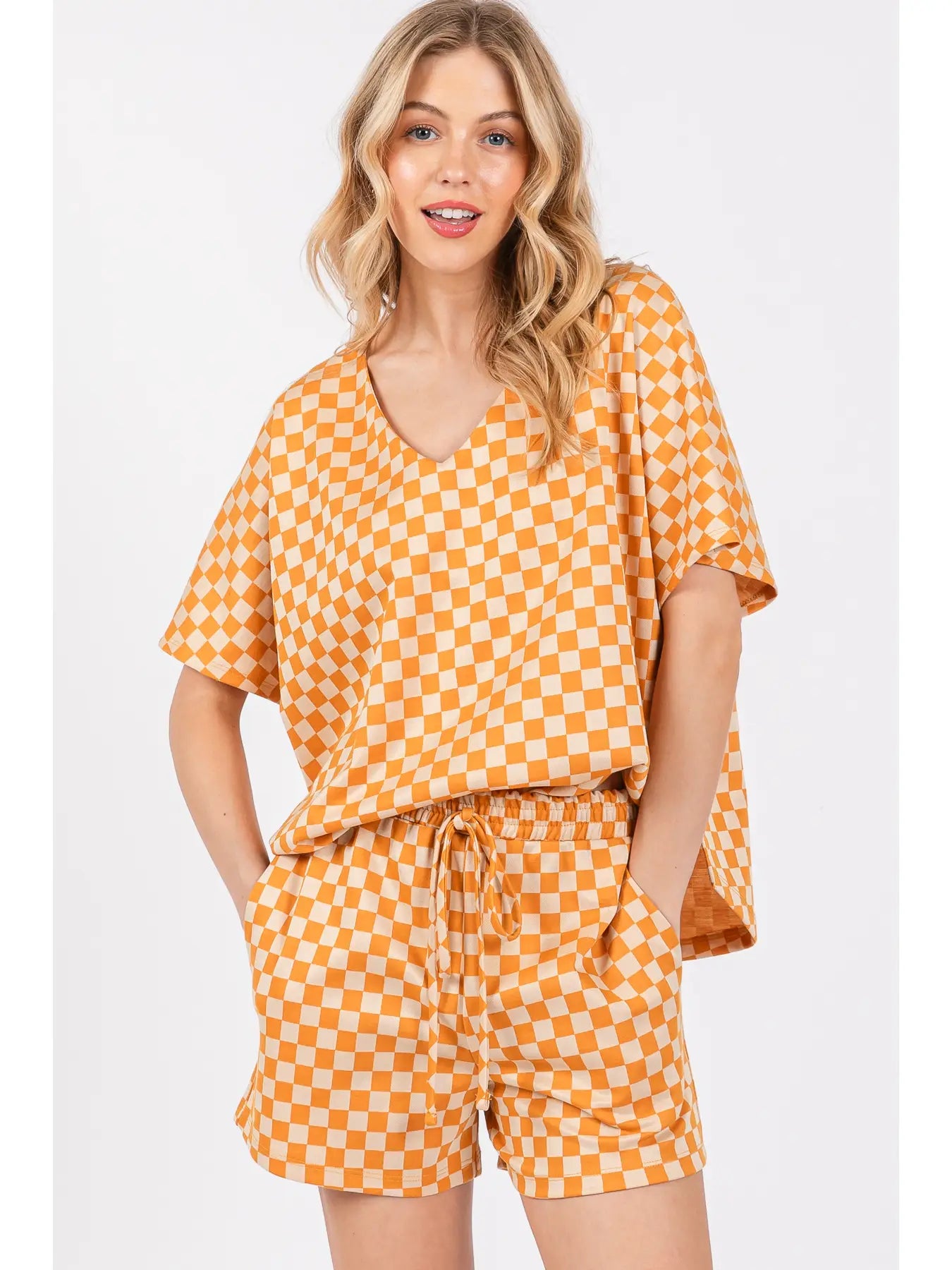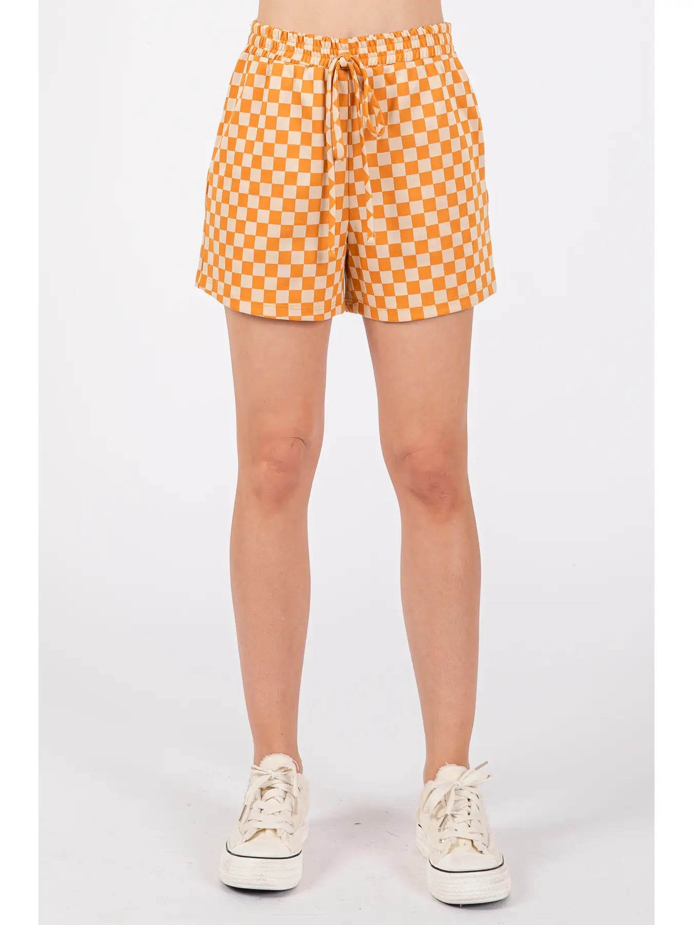 Game Day Checkered Elastic Draw String Shorts -Side pockets -Elastic waist -Draw string