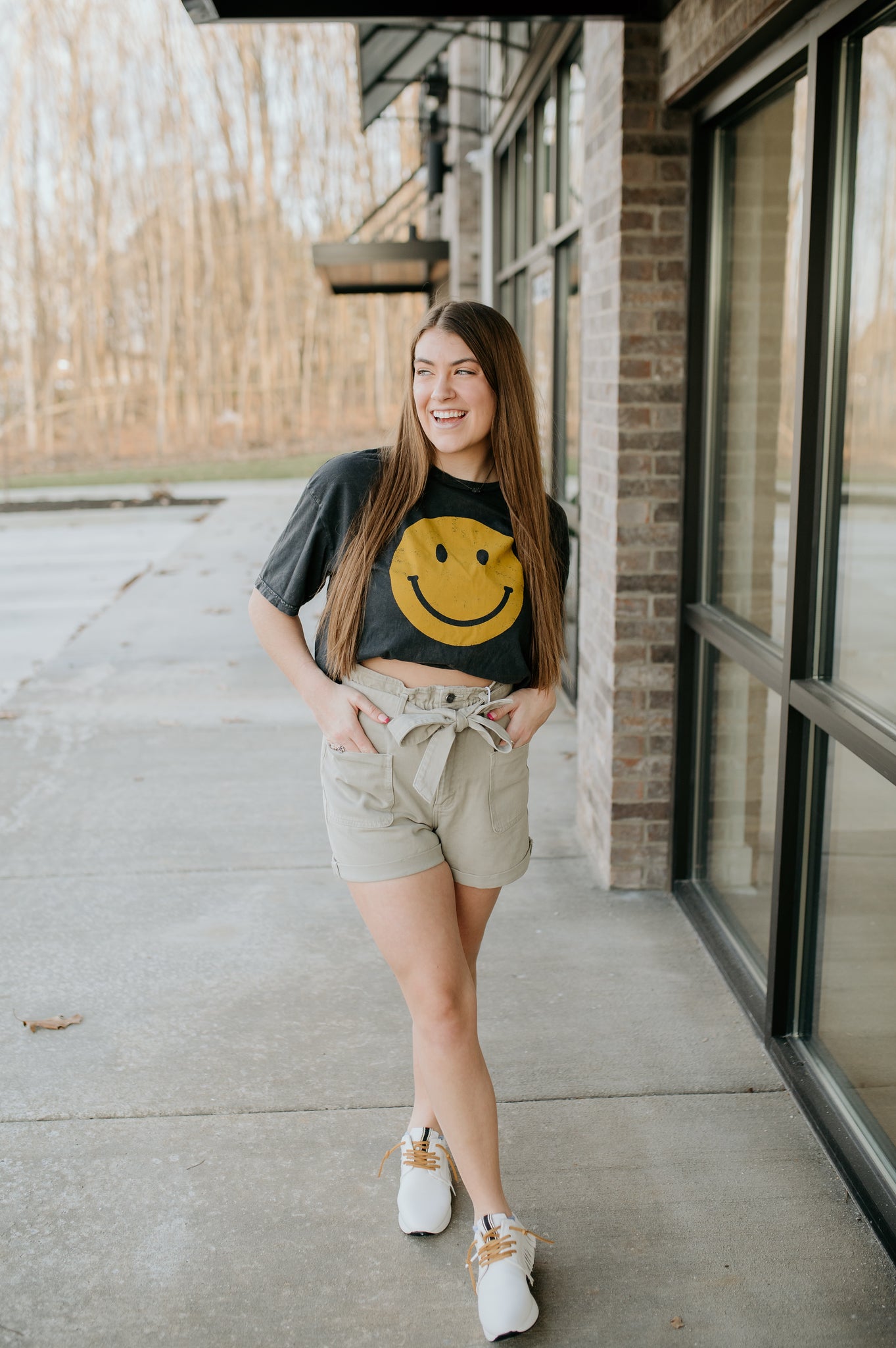 smiley face mineral washed tee